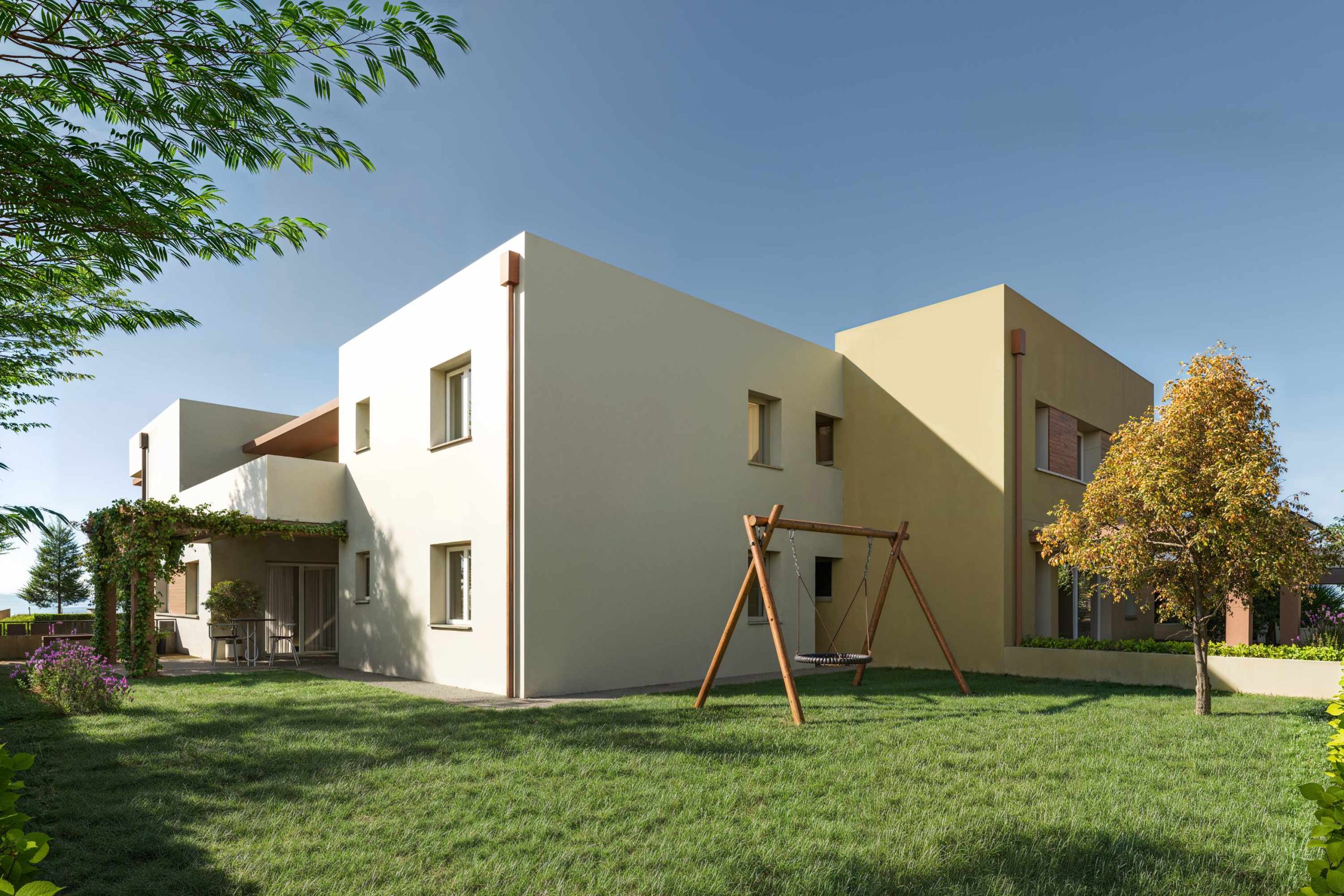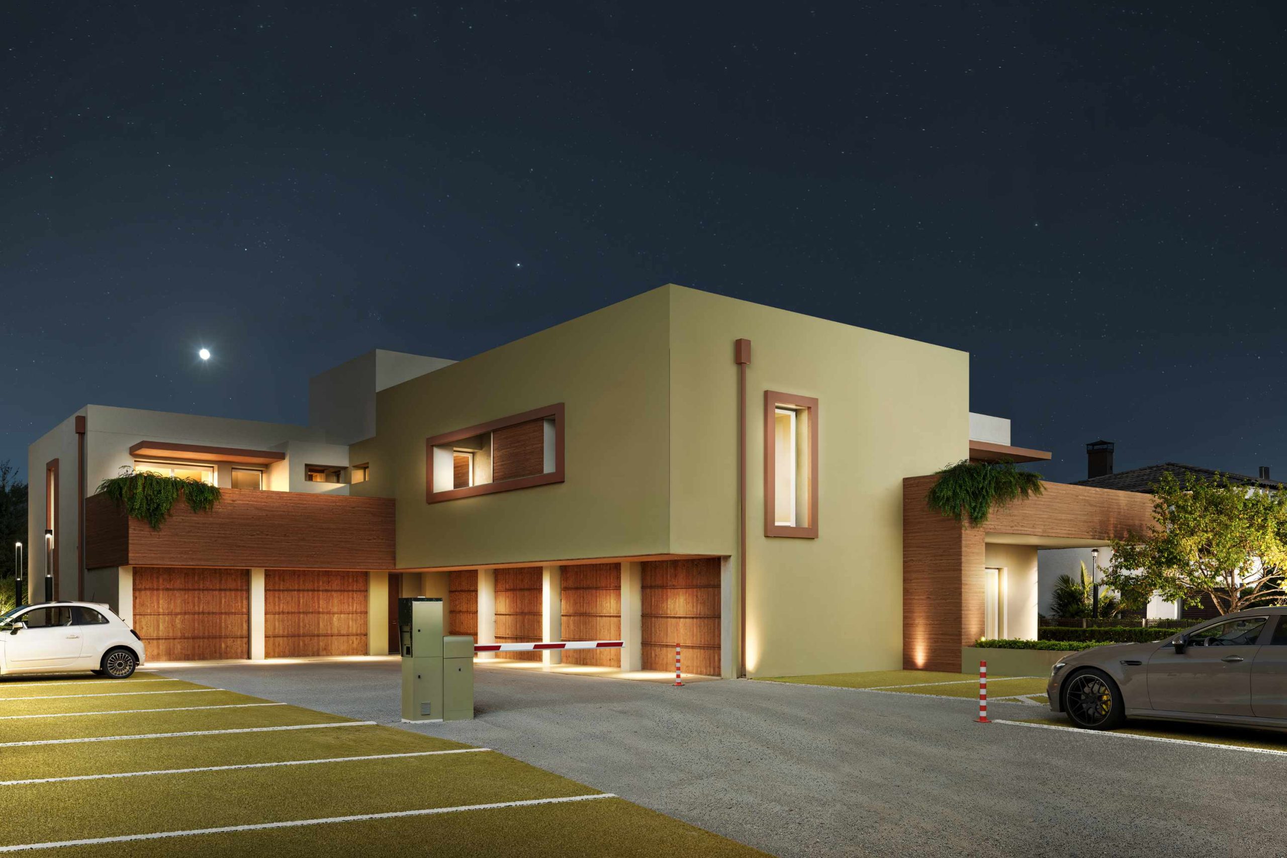 Ogni unità immobiliare è dotata di un garage coperto e un ulteriore posto auto esterno.